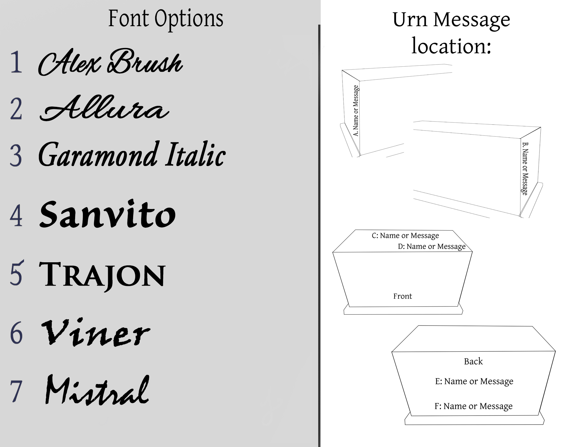 Urn Size choices: